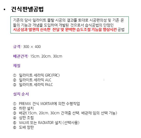 온돌세라믹 공법 - 습식몰탈공법 및 건식판넬공법